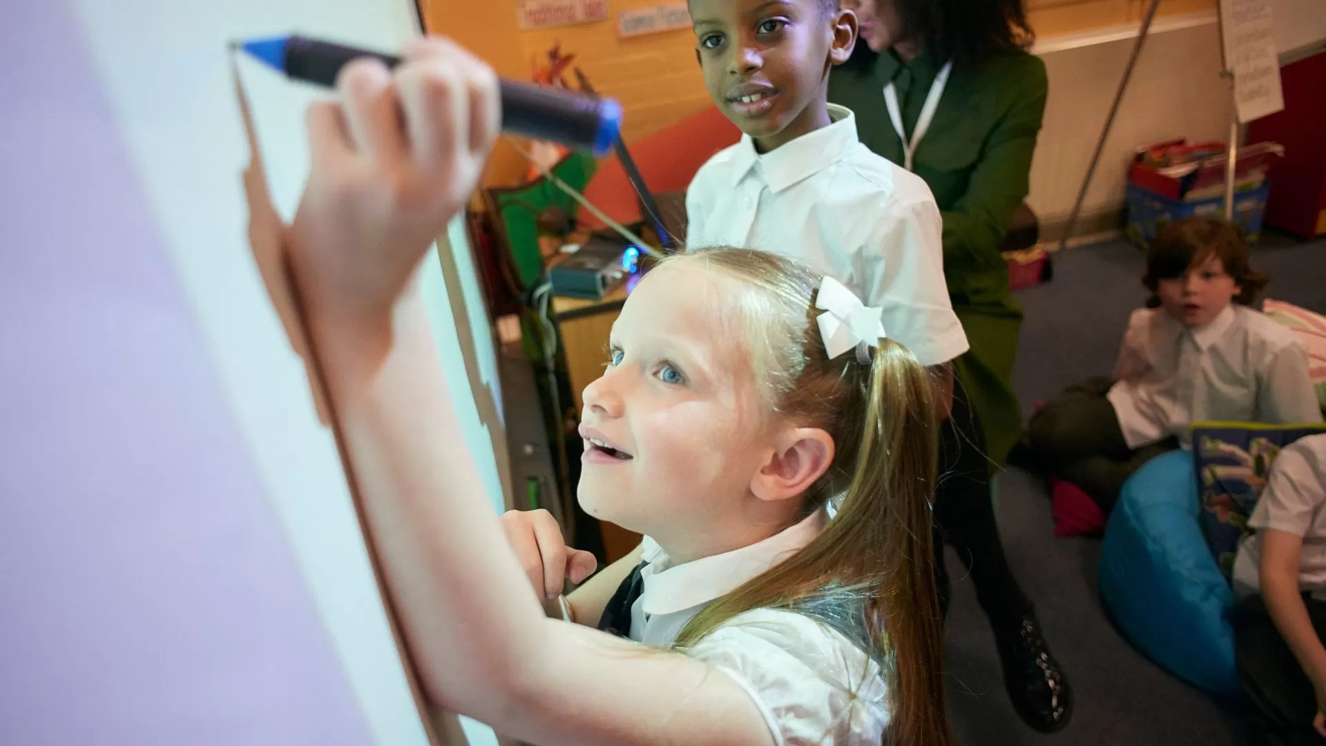 In addition teachers have classroom management tools so when delivering technology led learning, they can lock the devices the students are using to access only certain websites that are relevant, providing the opportunity for direct communication with students struggling to keep up without embarrassment and actively engage with the class keeping them all on track.